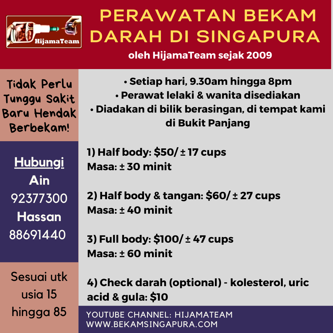 Perawatan Bekam Darah di Singapura oleh HijamaTeam sejak 2009